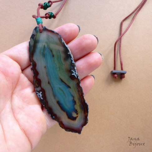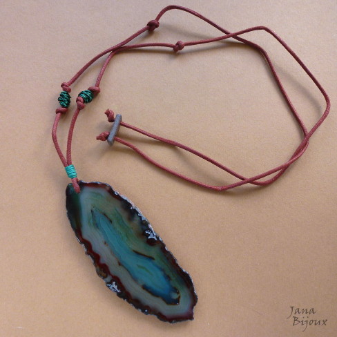 p80 25/01/2014VENDIDOS ( Prodáno)Jana Bijoux Colar comprido de fio ferrugem importado e 2pç feitas a mão e arame verde importado, ágata grande 9cm. Comprimento ajustável, acabamento com cerâmica com iniciais JB. Fio tem 76 cm. R$ 15,00