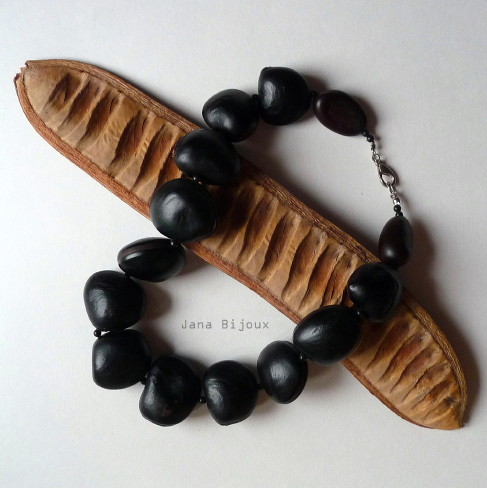 KRÁTKÝ A MASIVNÍ NÁHRDELNÍK ZE SEMÍNEK. KAŽDÉ SEMÍNKO MĚŘÍ PŘIBLIŽNĚ 3 CM NA ŠÍŘKU a  2,5 CM NA VÝŠKU.