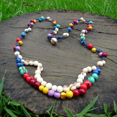 s113 Arco-íris 01/12/2010VENDIDOS ( Prodáno)Jana Bijoux Colar comprido com sementes de açají e macramé, sem metal algum, fecho com semente grande de bacaba R$ 36,00. DLOUHÝ NÁHRDELNÍK ZE SEMÍNEK ACAJÍ RŮZNÝCH BAREV, MAKRAMÉ, ZAVÍRÁNÍ S POUTKEM A SEMÍNKEM BACABA.