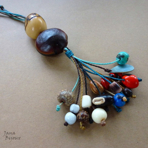 Colar comprido com sementes e fios coloridos. Colar sem metal nenhum, acabamento em cerâmica, comprimento ajustável. R$ 24,00