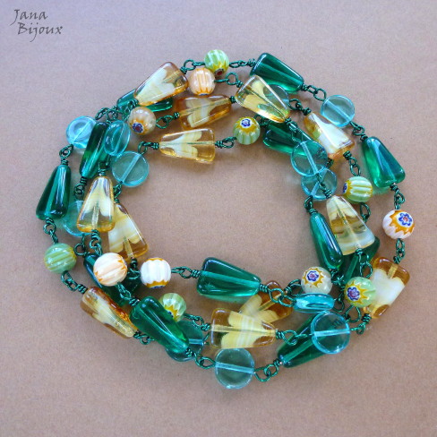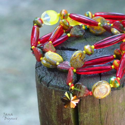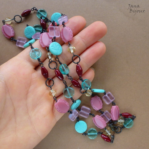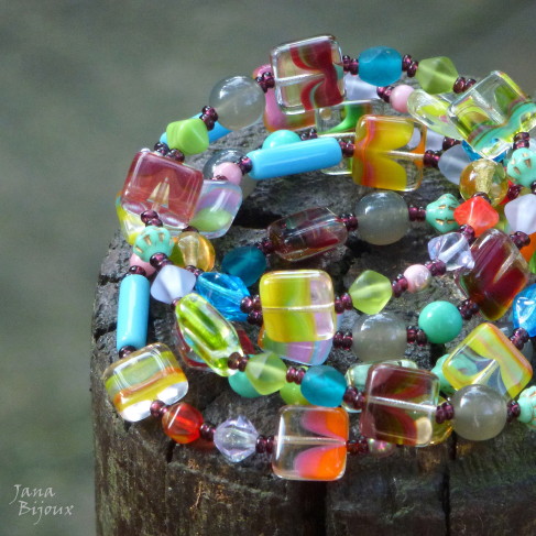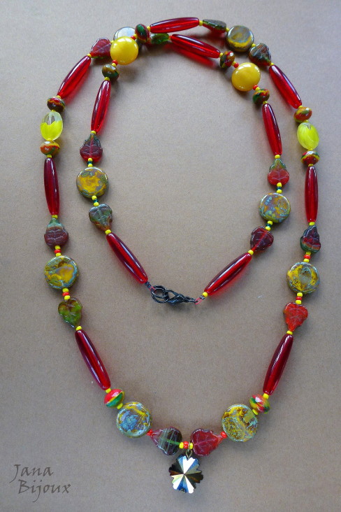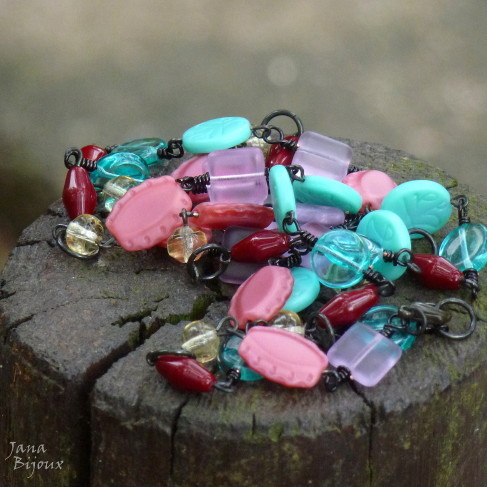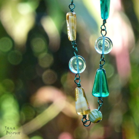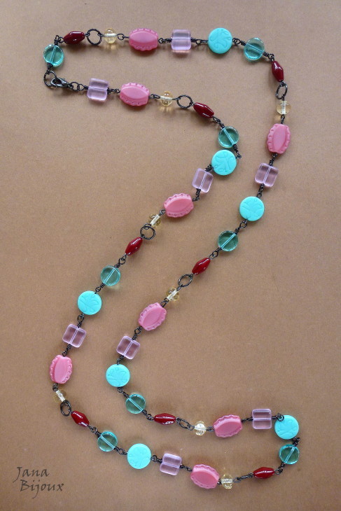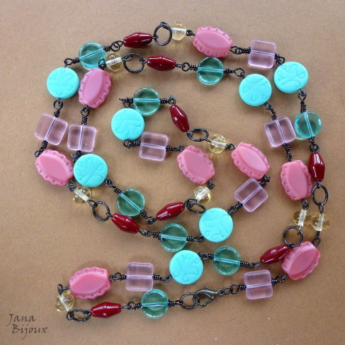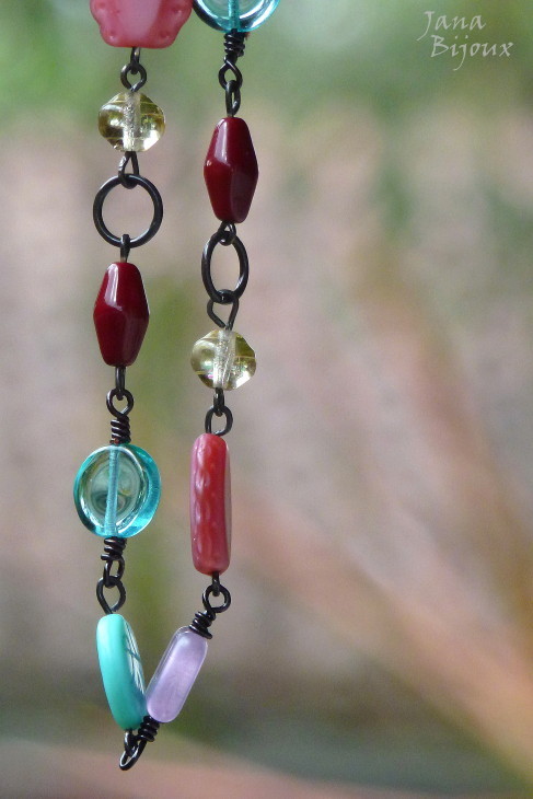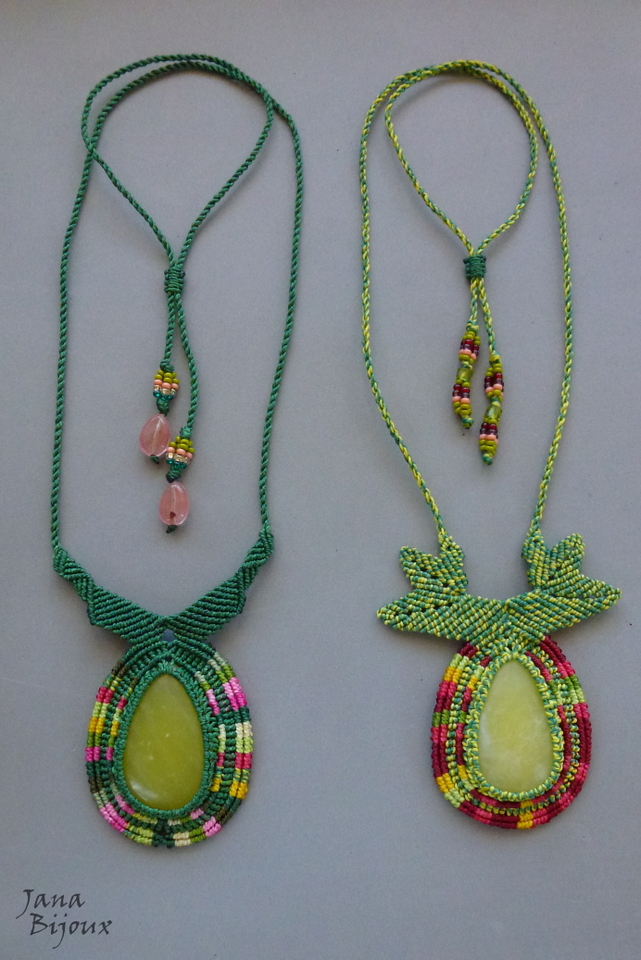 Fazia tempo que eu tinha estas duas pedras, jades chinêsas e não tive a certa idéia, o que eu ia fazer com elas, com qual cor eu ia casa-las. .e agora com verão, cores exuberantes e flores tropicais, derrepente era fácil !