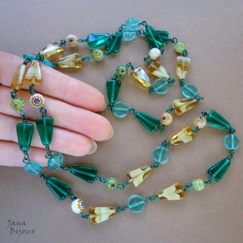 Comprimento ajustável, com caimento perfeito, abre até 84 cm, nas pontas tem 2 camadas de miçangas nas cores do colar e 2 vidros verdes. O colar por ter macramé em cima da pedra um pouco mais fechado, melhor ser usado como médio ou comprido (= não muito colado no pescoço) , caimento perfeito, sem emendas. Nas laterias macramé em formato de 2 folhas. Cada ponta do colar tem um pouco outro comprimento, não é defeito nem descuido, é de propósito :-).