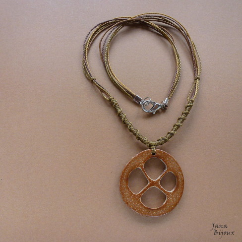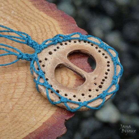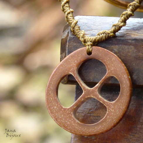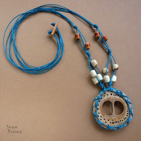 Colar comprido 86 cm (sem o medalhão) com frutu de babaçu, com desenho de furos, lixado e encerado (4 cm altura por 3,8 cm de largura) e macramé. O colar tem acabamento em cerâmica com iniciais JB e comprimento regulável. Tem tmb 4 peças feitas a mão de arames torcido em cor cobre e azul marinho, para criar uma ar mais moderno no colar. Colar é antialérgico de