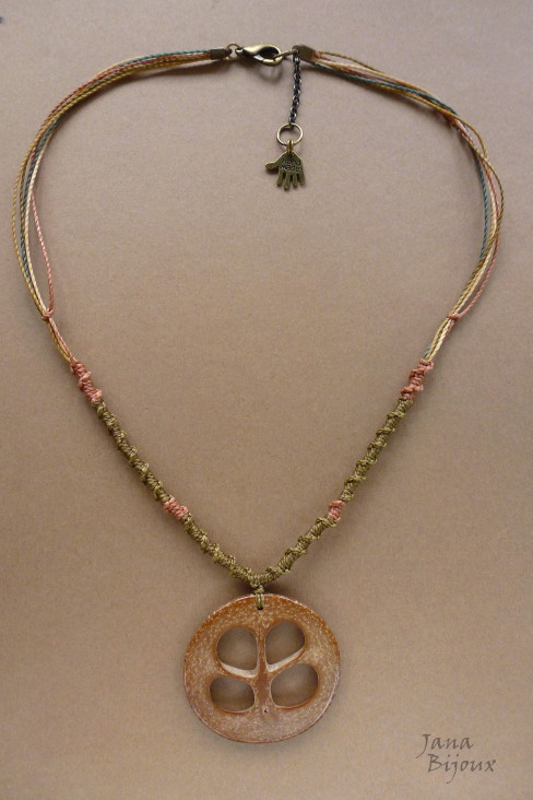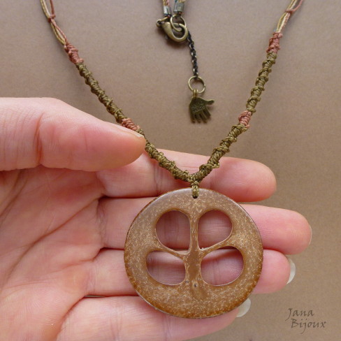 DLOUHÝ NÁHRDELNÍK S PLODEM BABAÇU A MAKRAMÉ.