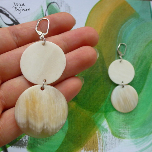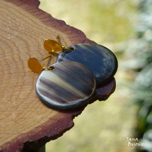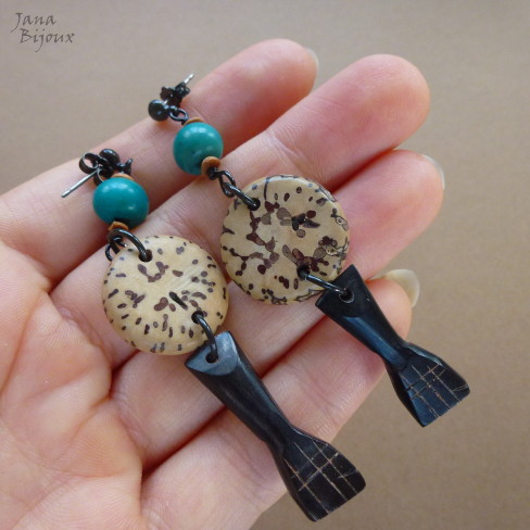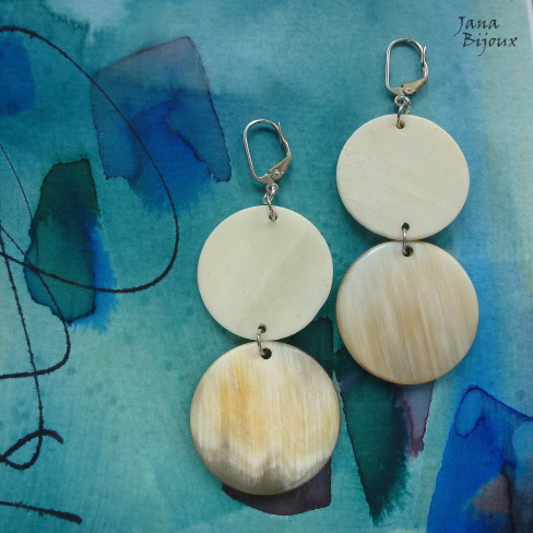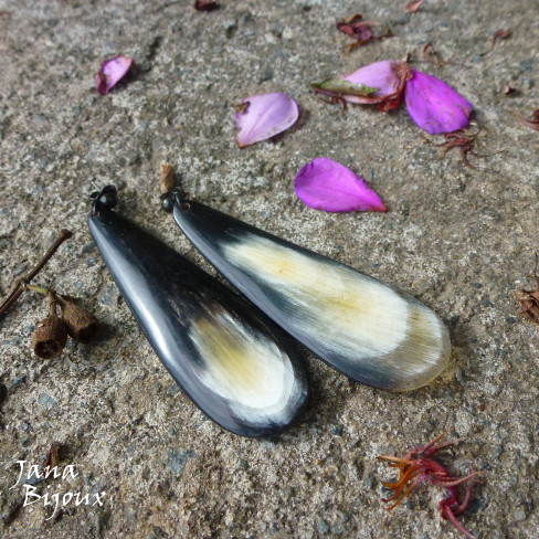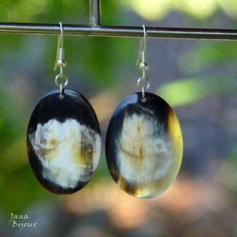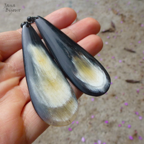 Lindos brincos de chifre, 7 cm compridos, leves com fecho de bijuteria cor dourada. Cada peça tem outro manchado.. isso que é beleza de peça natural… mas sempre junto duas peças com mesmos tons, manchados para ser mais ou menos compatíveis. R$ 29,00