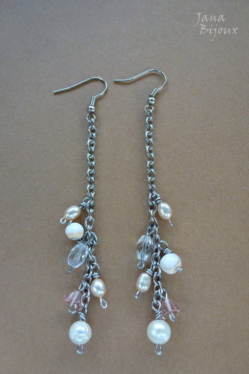 Brincos de aço inox antialérgico com pérolas compridas. Comprimento dos brincos 4,5 cm, arame de aço grosso e forjado na ponta, forneço com tarraxa discreta de silicone R$ 22,00