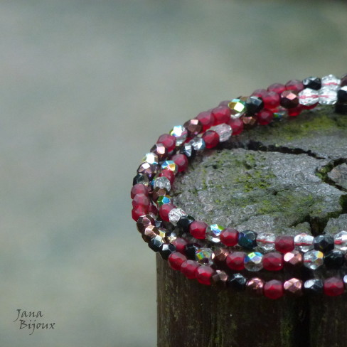 Colar-pulseira 72 cm, pode ser usado de ambas maneira, de cristal em tons burgundy, preto com dourado, bronze e transparente com prata, como pulseira da certinho 4 voltas, como colar pode ser facilmente usado com outros colares em várias camadas por ser delicado, acabamento em zinco preto PEÇA ÚNICA R$ 33,00