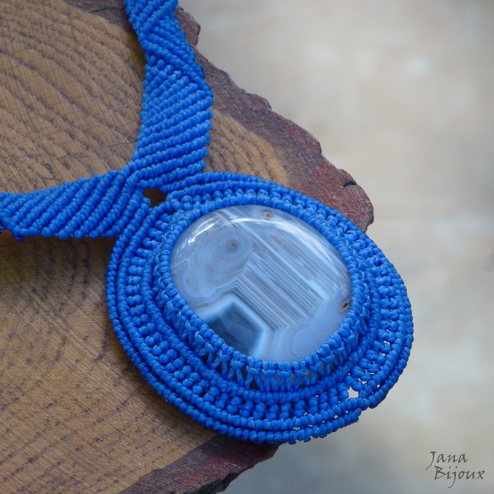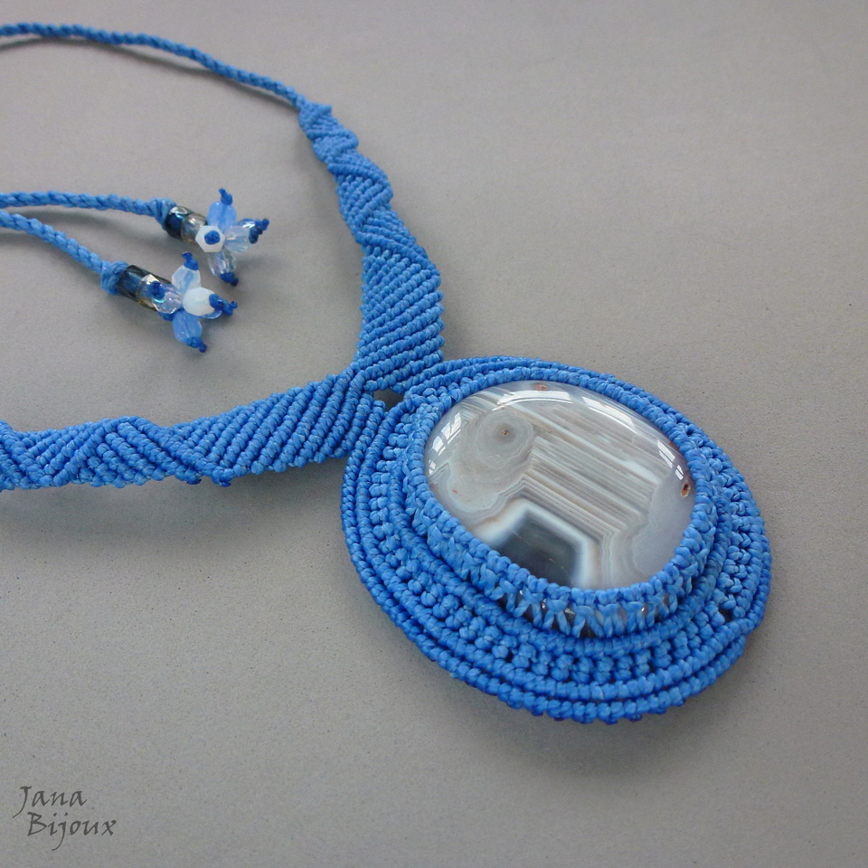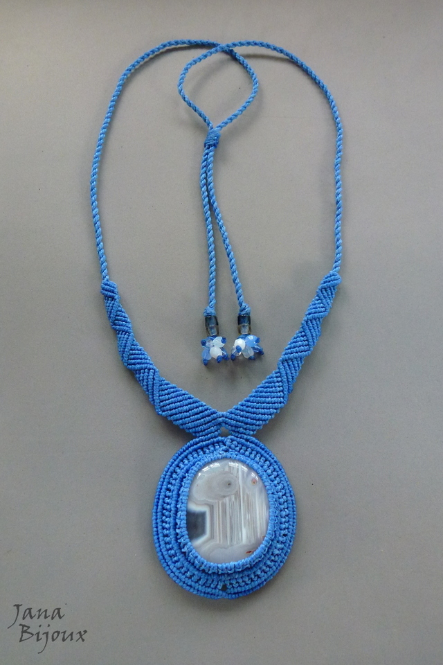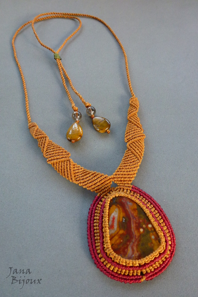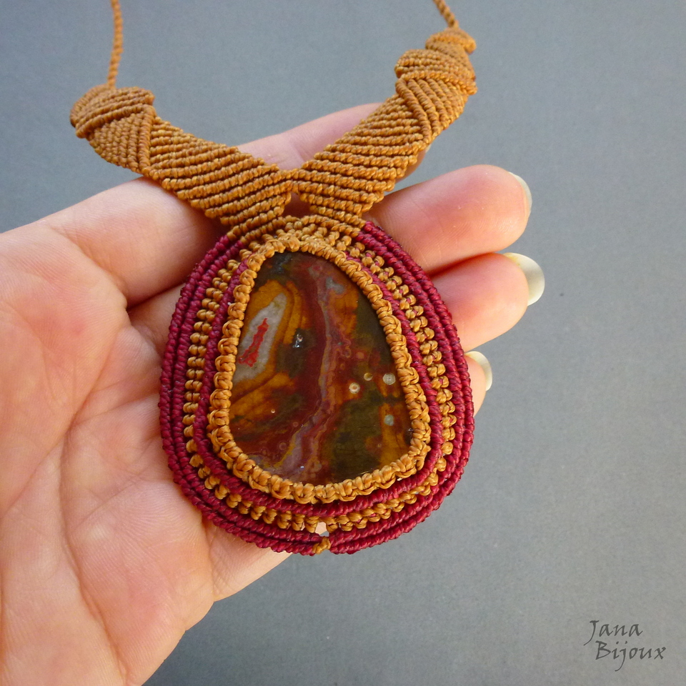 Pedra , mede 4,4 x 3,2 cm. Comprei ela diretamente do mineralogista, especialista em pedras da República Tcheca. Com o macramé, ela tem 6 cm. A pedra segura só com nós, sem cola e sem furo.