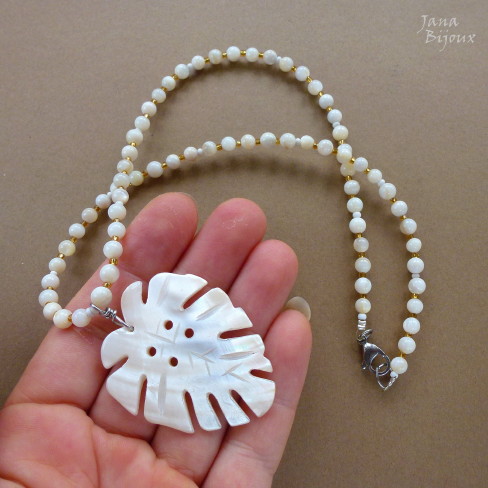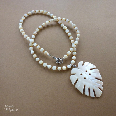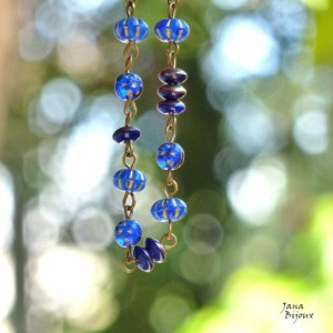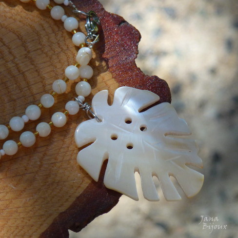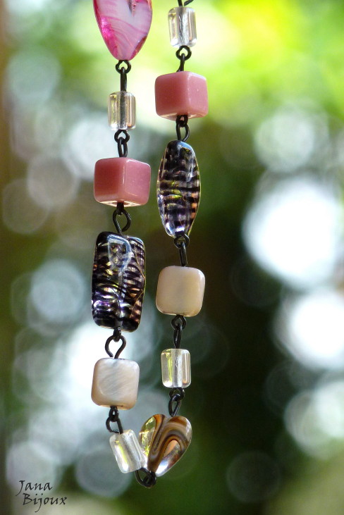 Colar comprido de vidro, madrepérola e componentes banhados à zinco preto R$ 42,00. Possível como conjunto com este brinco.