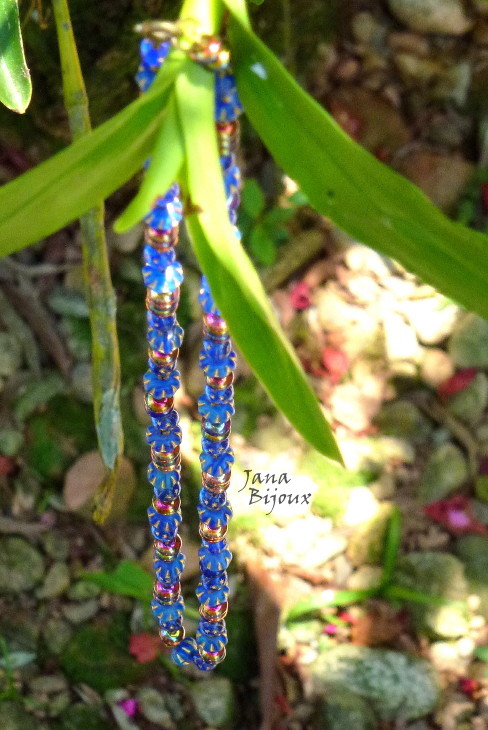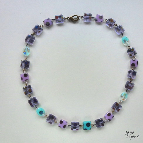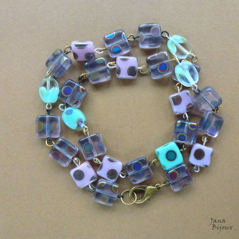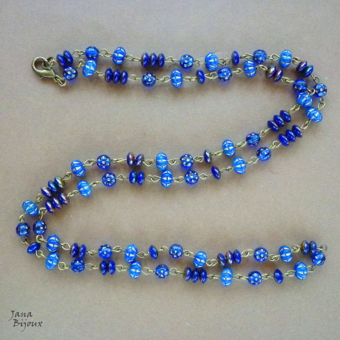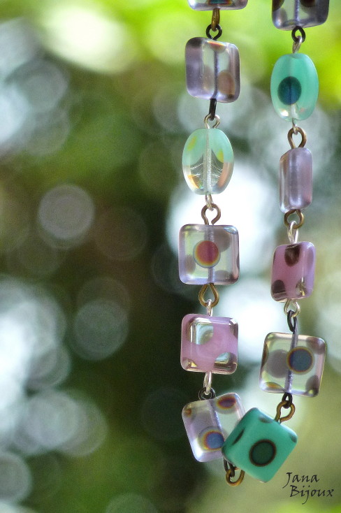 DLOUHÝ NÁHRDELNÍK ZE SKLA A KOVODÍLŮ Z ČERNÉHO ZINKU.