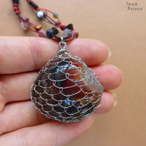 Colar comprido com pedra howlita quadrada ( 3,5 cm ) , com engate de inox feito a mão.. pingente inteiro tem 5,5 cm . A corrente grossa sem fecho, antialérgica de inox, comprimento 82 cm. R$ 25,00