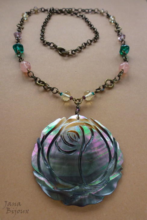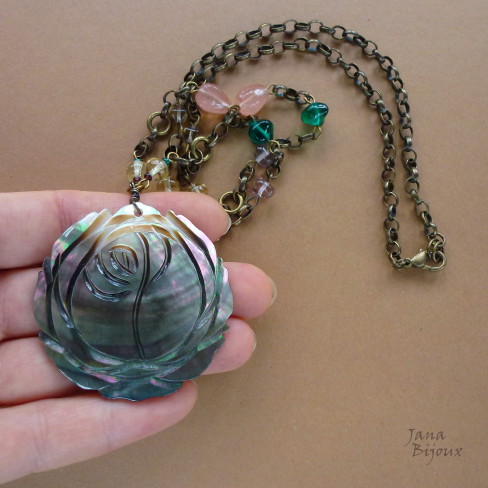 Pingente inteiro tem 4,5 cm, a pedra quartzo rosa mede 3,5 cm por 3 cm. Realça luz, pode ser usada de dois lados. R$ 33,00