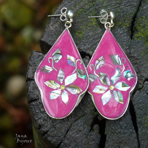 t12 16/12/2012VENDIDOS ( Prodáno)abalone, bijuteria artesanal, brincos chiques, brincos rosa, flores de abalone, jana bijoux, madrepérolaJana Bijoux Brincos de alpaca com fecho de titânio e tarraxa, abalone, comprimento 5,2 cm. Hipoalérgicos. R$ 25,00 TITANOVÉ ZAVÍRÁNÍ, ALPAKA, PAUA MUŠLE, DÉLKA 5,2 CM.