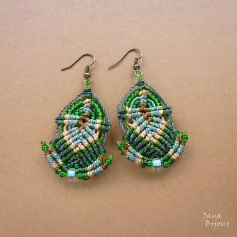 VERDE: 6 cm R$ 28,00 Cores: cinza, cru, 4 tons de verde, miçangas verde e 1 miçanga cor azul piscina.