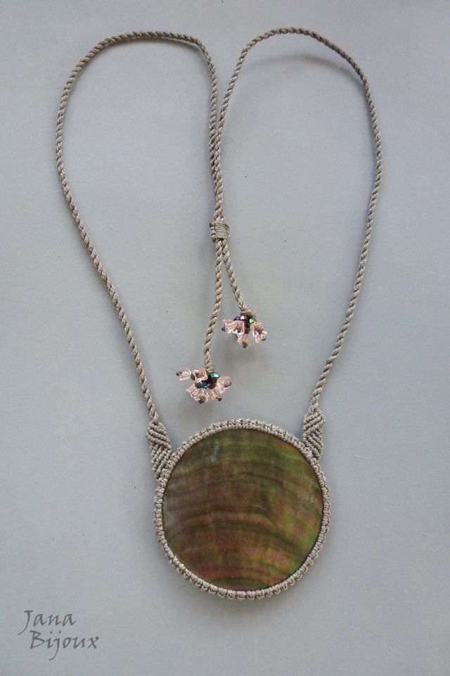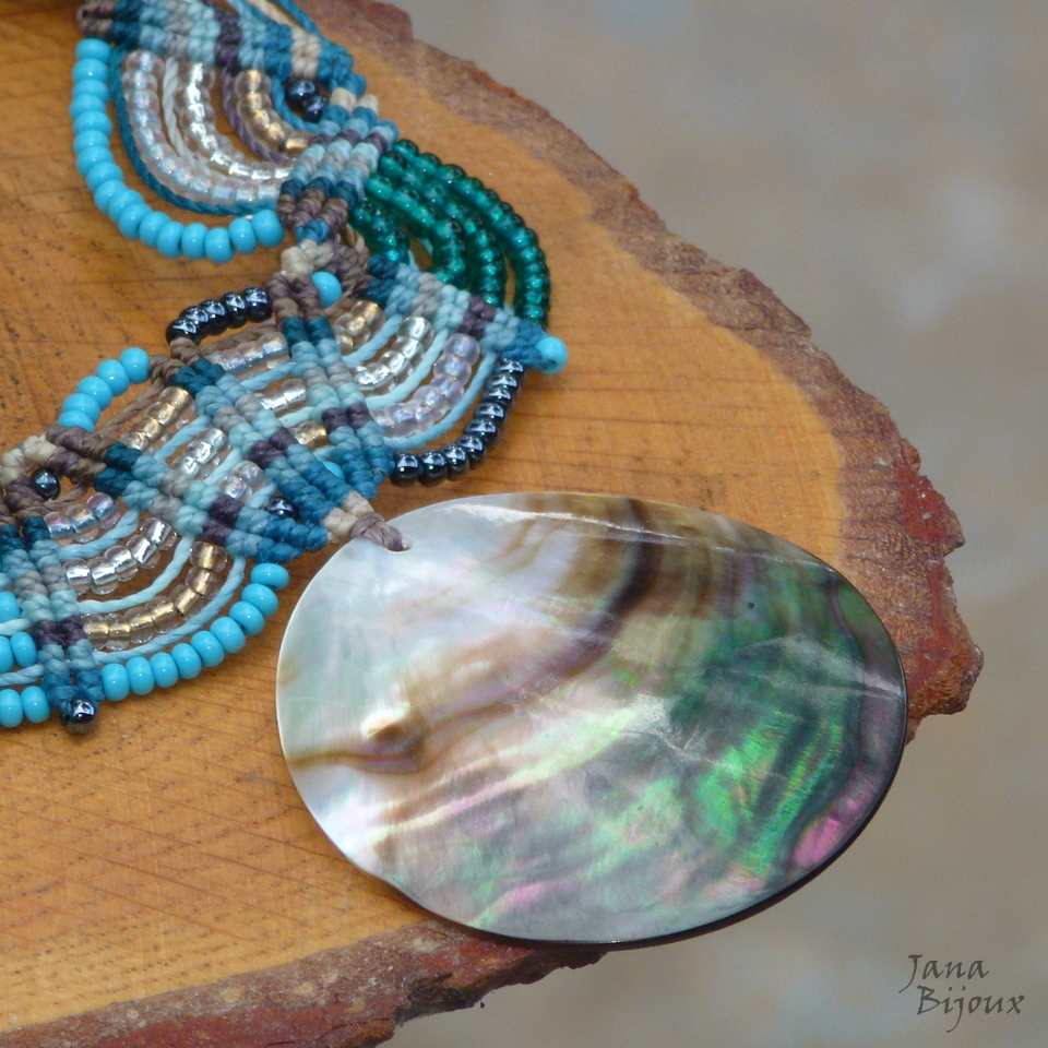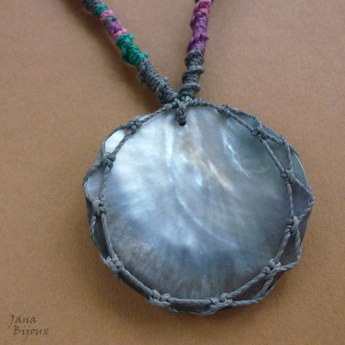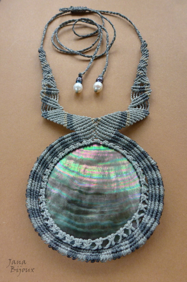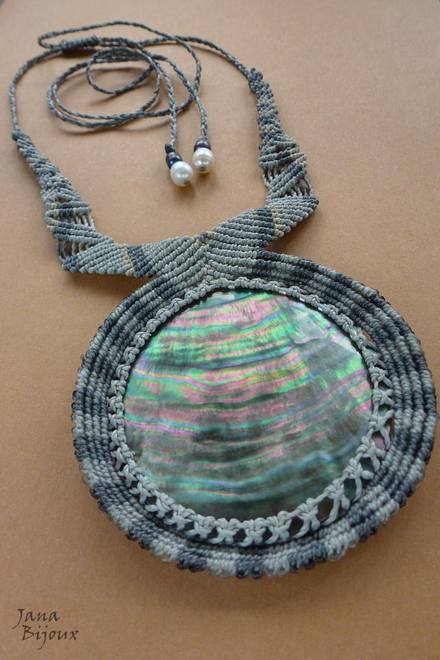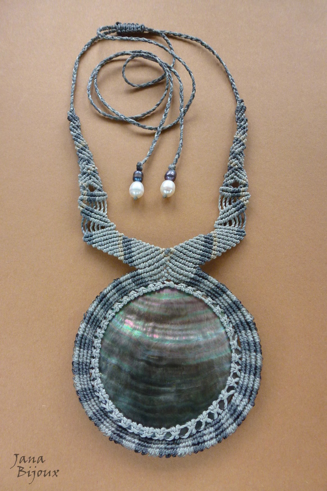 Colar moderno, minimalista, com linda margaritifera (madrepérola de agua doce) e macramé.