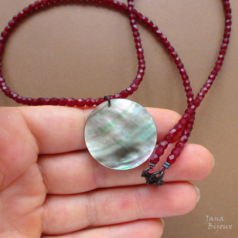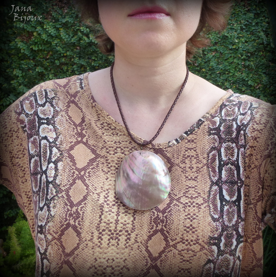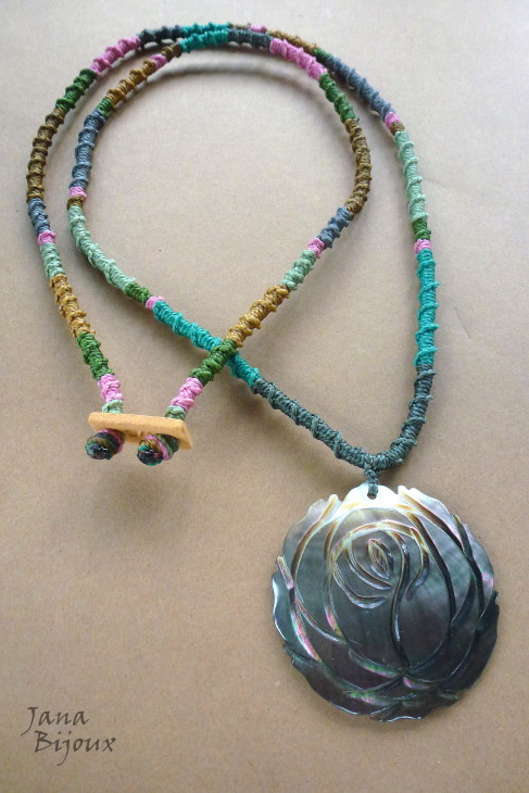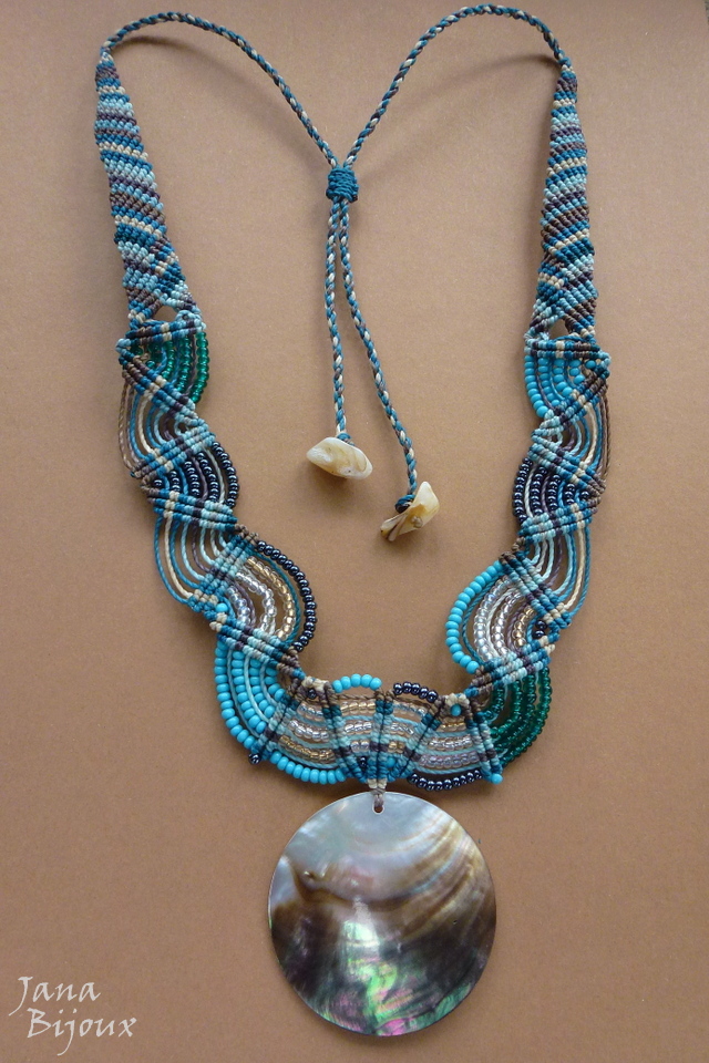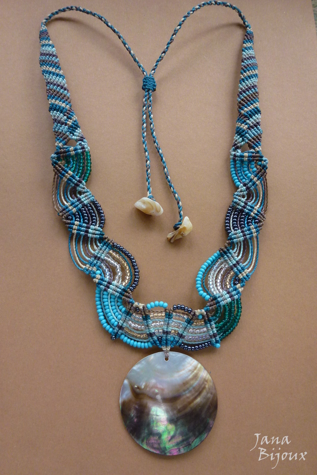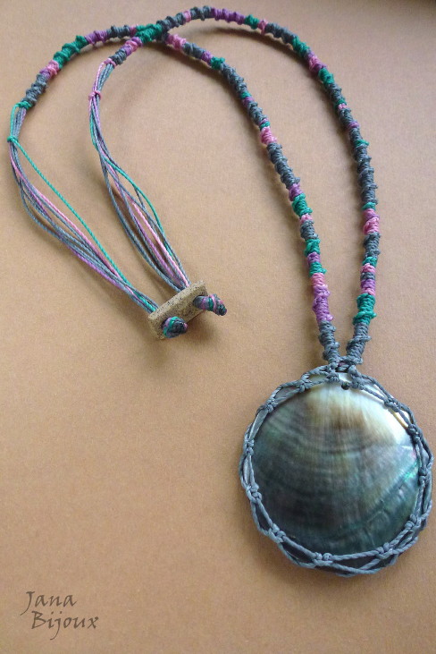 Colar moderno, minimalista, com linda margaritifera (madrepérola de agua doce) e macramé.