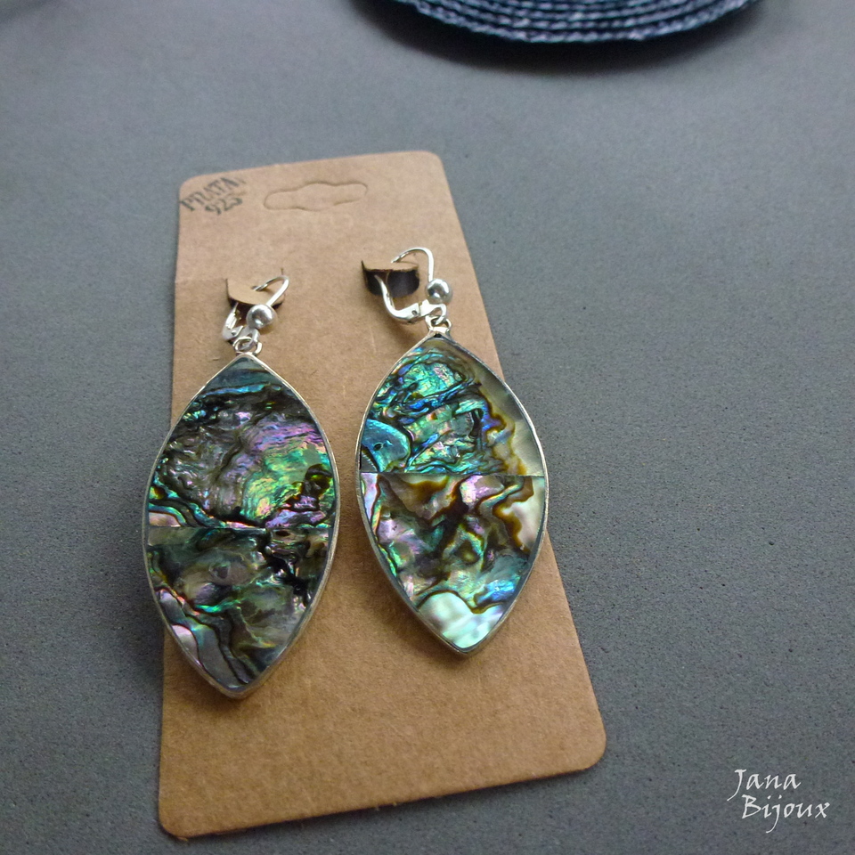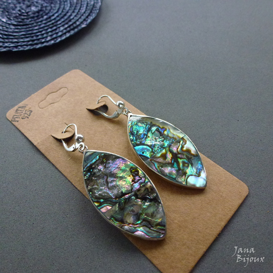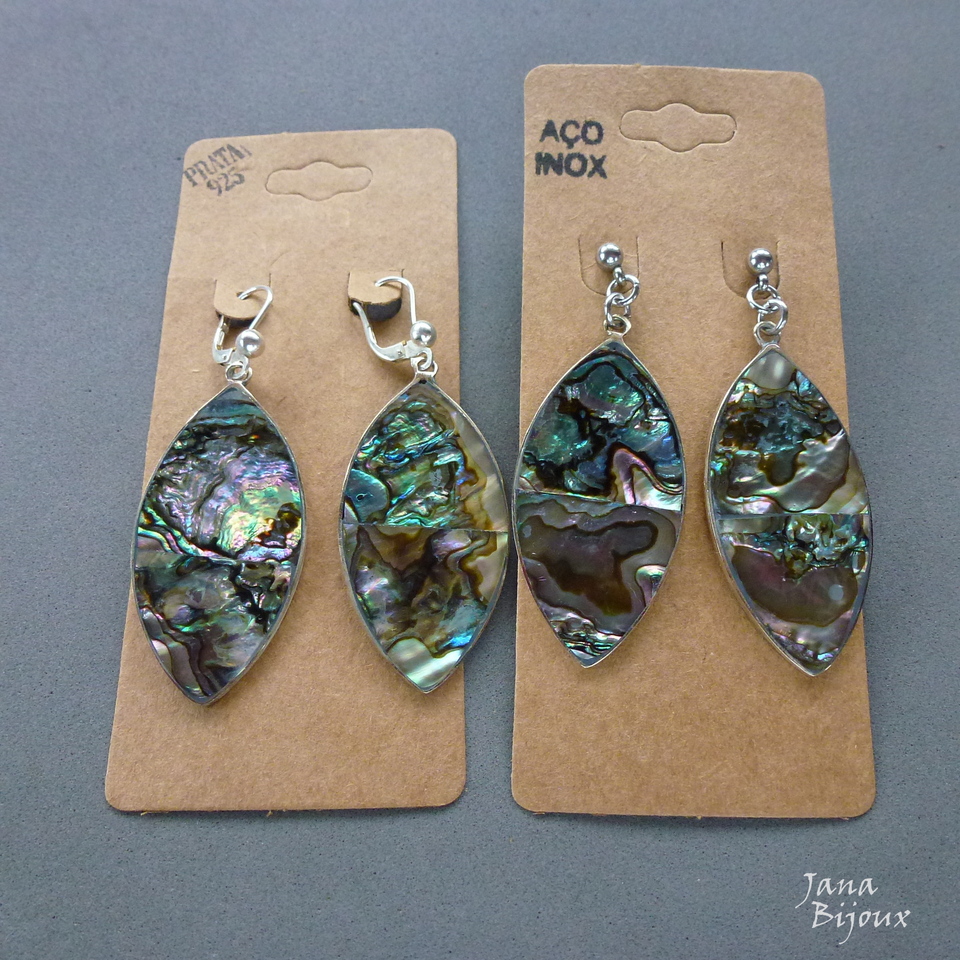 Ag204 26/06/2018VENDIDOS ( Prodáno)abalone, artesanais, brincão, brincos de prata, brincos grandes, prata 925Jana Bijoux Brincos de abalone, alpaca e com fecho de prata 925, comprimento 6,2 cm R$ 46,00 Possível tmb com aço inox da última foto no lado direito. VENDIDO