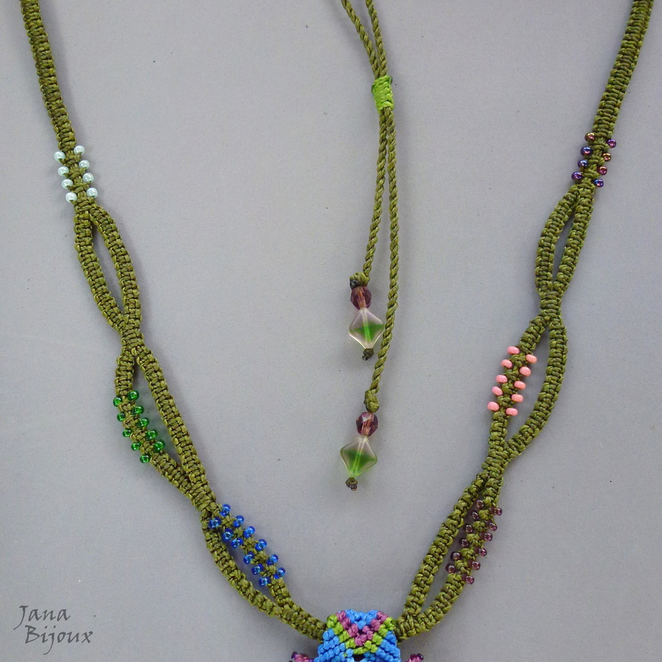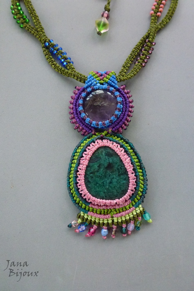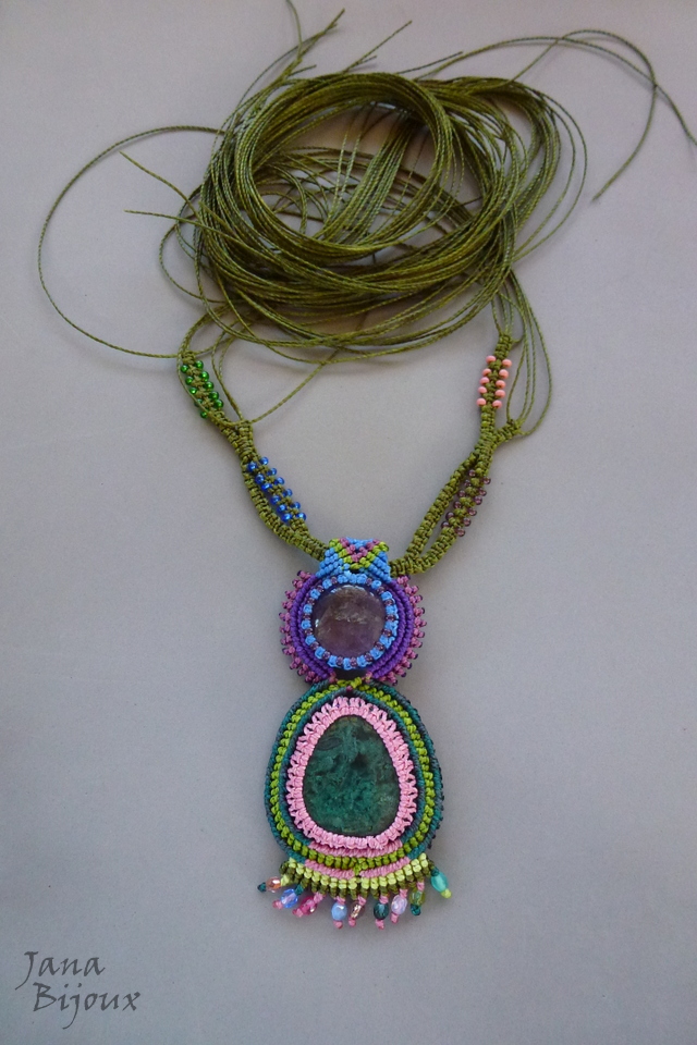 Fios de cor: As laterais verde musgo. Na pingente cor rosa, verde petróleo, verde escuro, azul royal, verde grama, roxo, ametista.