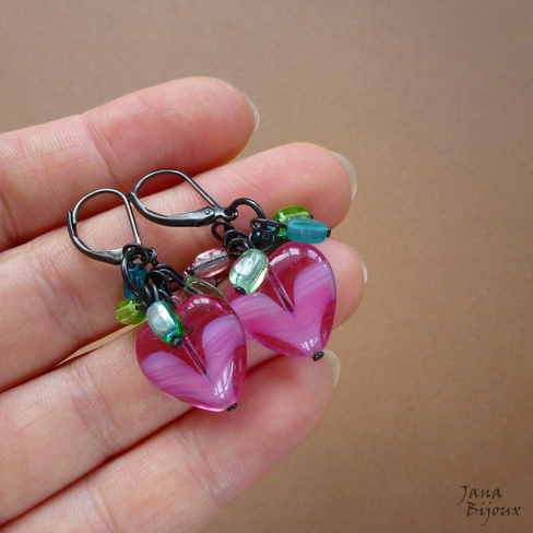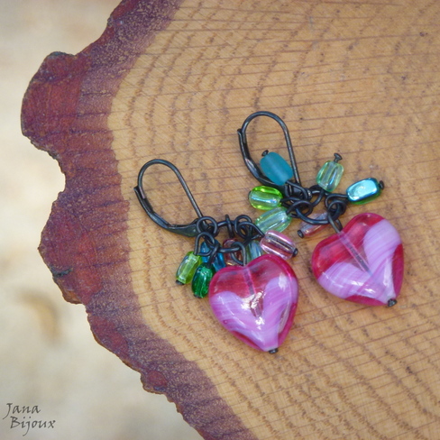 z70 09/11/2014VENDIDOS ( Prodáno)Jana Bijoux Brincos fofos de corações e canutilhos coloridos de cristais, componentes de zinco preto, comprimento 3,9 cm, possível com esta pulseira como conjunto R$ 22,00.