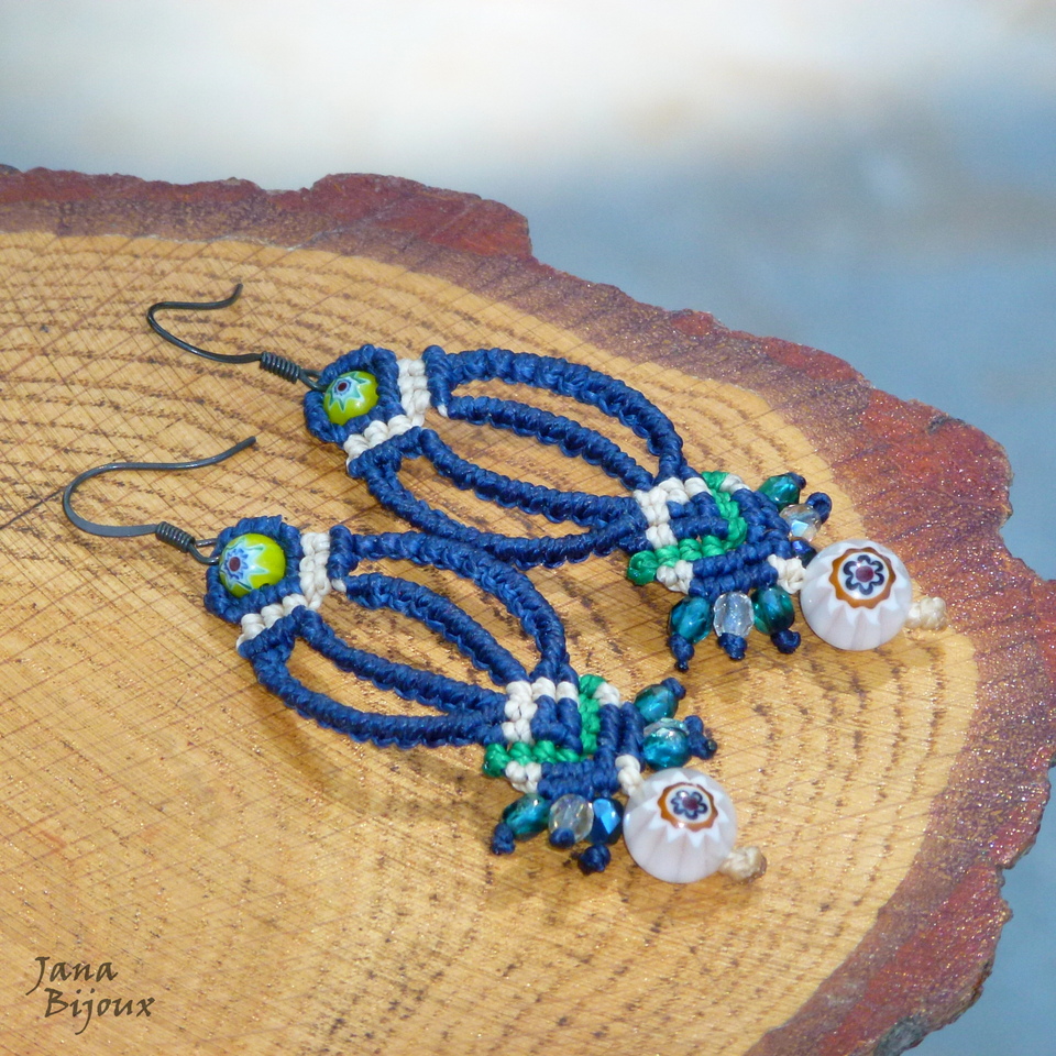 Brincos compridos 8 cm, delicados, chiques, cor azul marinho super escuro e millefioris . Super leves com fecho anzol de zinco preto R$ 28,00